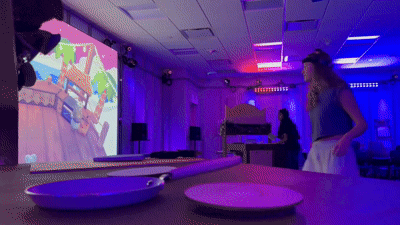 There is also a recipe book that players can view by walking up to the red mat and question mark. The recipe book shows what ingredients belong at each station.