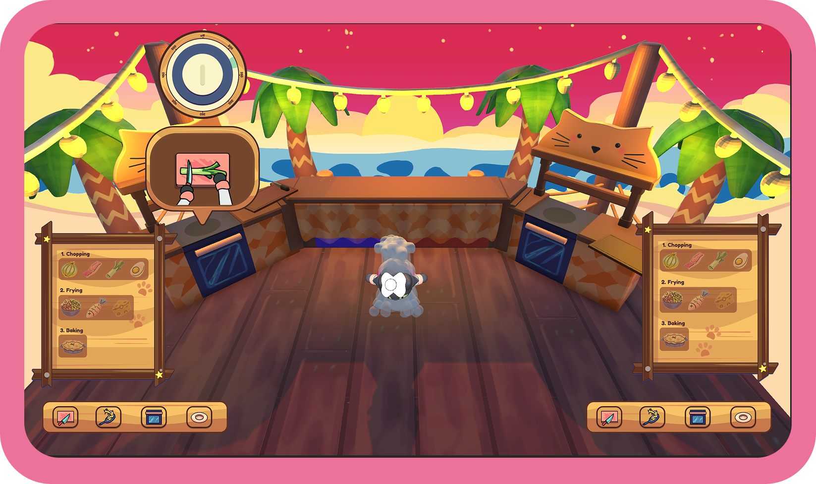 Chop, fry, bake, to make the ultimate stargazy pie in an immersive 2v2 kitchen battle showdown. Using motion capture technology paired with a physical kitchenette, live your cooking dreams as an adorable kitty. Cook like your nine lives depend on it in Mr. Meows Kitchen.